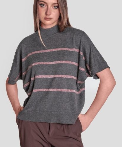 ART. 45413 LIGHTWEIGHT CASHSILK TURTLENECK CAPE WITH STRIPES